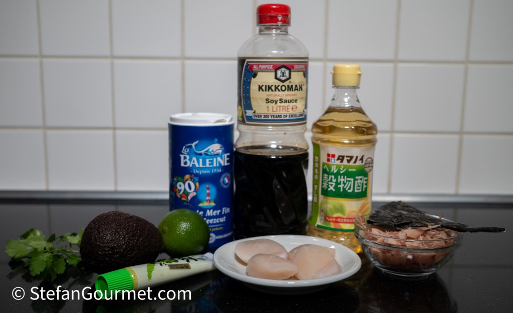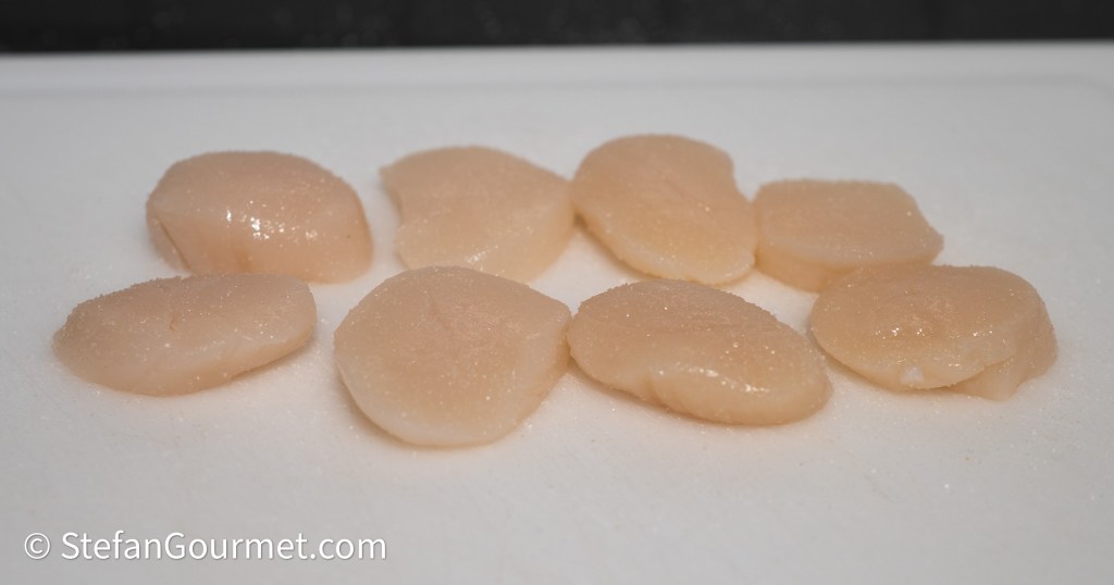 1. It is the same story for scallops. I use high quality Japanese scallops that are already frozen. But if I can get fresh live scallops in the shell, I will use them without freezing, accepting the risk of parasites.
