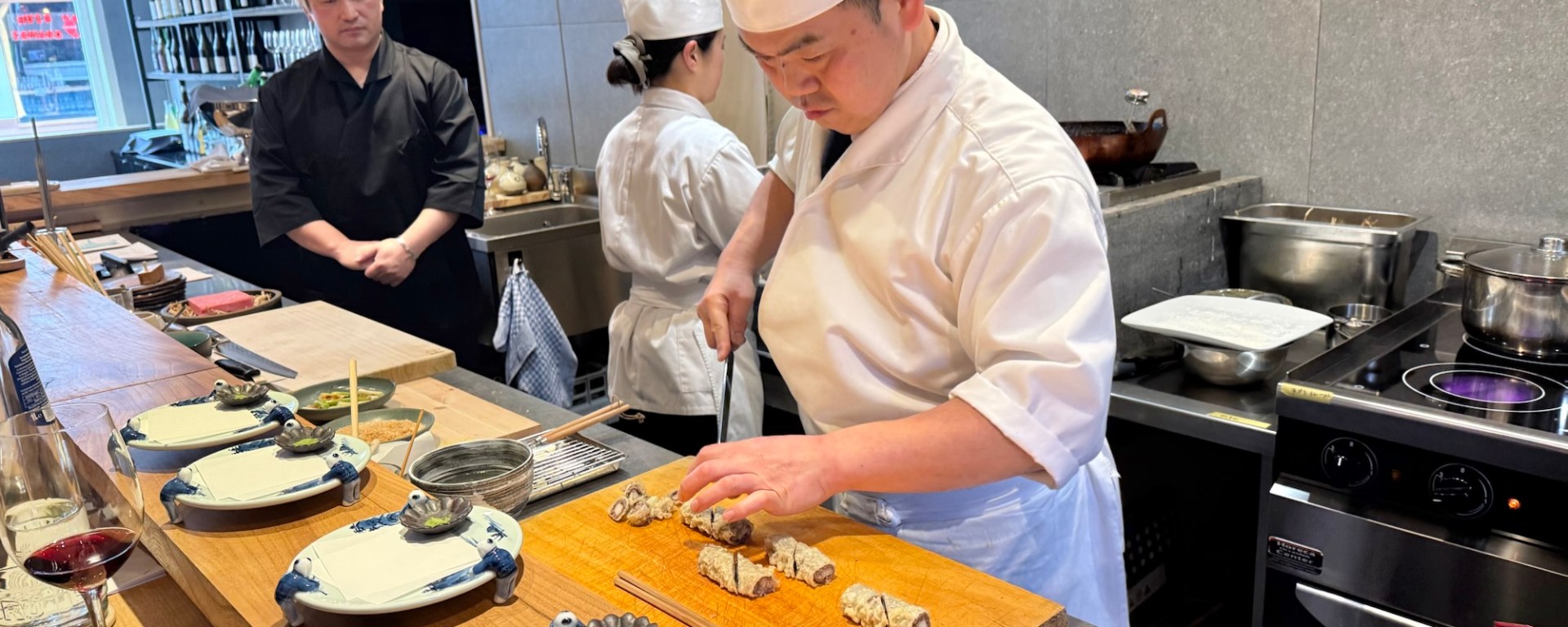 The essence of counter-style kappo is immediacy; every dish is prepared directly in front of the guest and served at its absolute peak. While the pacing is synchronized, the experience remains personal as the chefs finish and hand each portion to you individually.