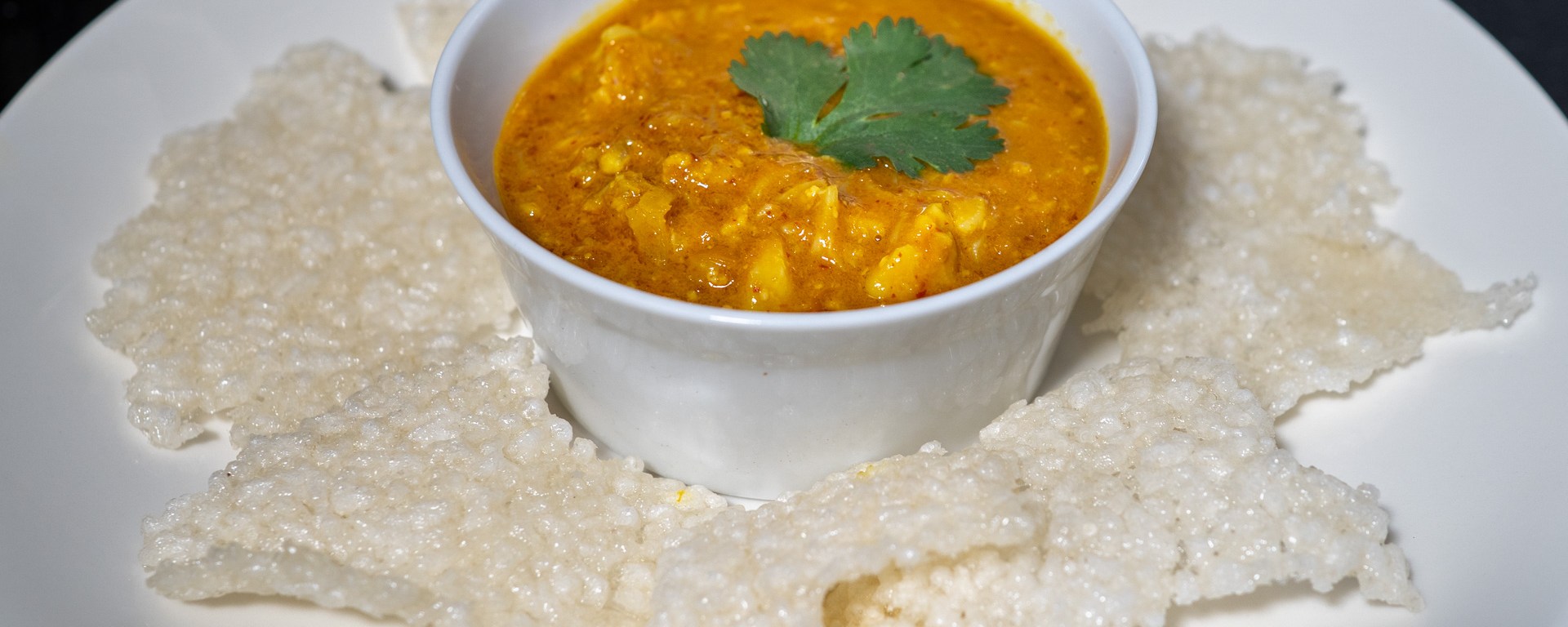 My first attempt to recreate this dish at home was very successful, so I am sharing my recipe with you. I used local North Sea crab and added a reduced stock made from the shells to the curry to deepen the crab flavor. Instead of rice crackers, the curry can also be served with thin rice noodles (Khanom Jeen) or steamed jasmine rice.