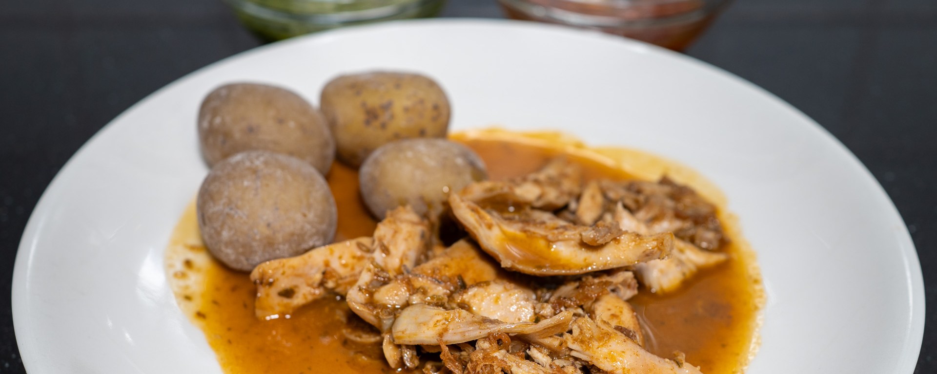 In Tenerife, this dish is typically served as rustic, bone-in pieces of rabbit. Rather than following that traditional presentation, I prefer to debone the meat after cooking. I then use the bones to create a stock, which I reduce and incorporate back into the sauce. This approach offers two distinct advantages: it ensures a more refined dining experience and captures the full depth of flavor from the bones. Removing the meat is straightforward once it has been cooked, and while it requires a bit more effort from the chef, it significantly enhances the pleasure for your guests.