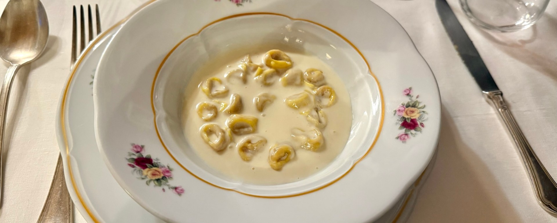 The first primo was the most famous dish of the restaurant and features in both tasting menus: tortellini with the restaurant’s own cream, panna d’affioramento. The restaurant translates it as “outcrop cream,” but I think something closer to the Italian, such as “rising cream”, better describes how the cream naturally rises to the top of the milk rather than being centrifuged out industrially. It is sourced from Anna Caretti’s family farm and is silkier and more floral than regular cream. It was outstanding, the highlight of the meal, and I can see why it has become a cult dish.