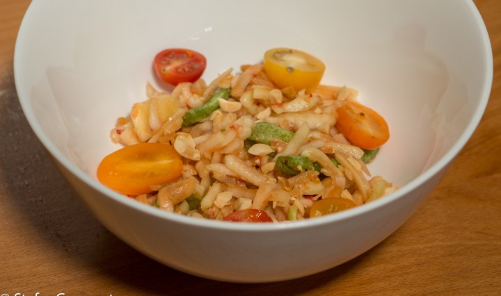 Green papaya is an intriguing ingredient to me, because it is just an unripe papaya, but here in the Netherlands costs about three times as much as a ripe one. The green papaya itself doesn’t have much flavor and provides … Continue reading Thai Green Papaya Salad (Som Tum)
