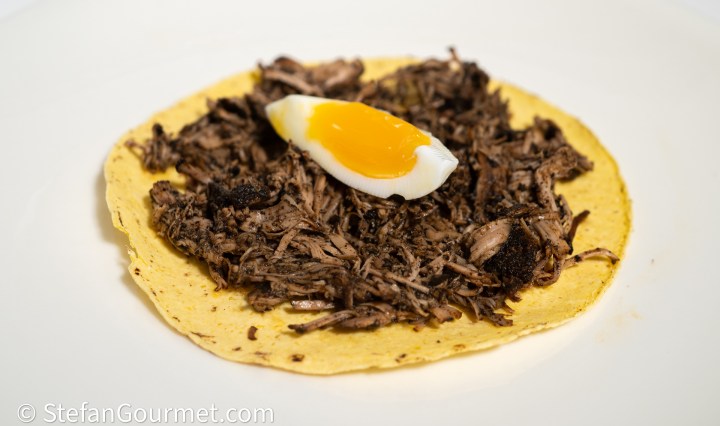 During our vacation in Yucatán in Mexico I thoroughly enjoyed the local food. For lunch we often went to a taquería to have tacos. Taquería Honorio in Tulum has become famous due to René Redzepi’s praise when Noma had a … Continue reading Tacos with Relleno Negro Sous Vide (Black Filling of Pulled Turkey with Roasted Chiles)