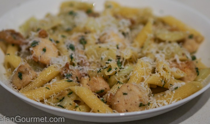 Many pasta dishes are great for a weeknight meal, as they take no longer to prepare than it takes to cook the pasta. This is another example of such a dish, not a classic Italian recipe but something that came … Continue reading Pasta with Rabbit and Fennel (Penne Coniglio e Finocchio)
