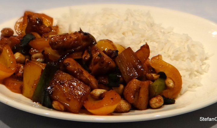 Kung Pao Chicken is a dish I’ve discovered only recently because it is not on menus of Chinese restaurants or take-out places in the Netherlands. ‘Chinese’ restaurants in this country are in fact Chinese-Indonesian, the chefs are mostly trained in the Netherlands at the same school, and the menus of those restaurants are mostly all the same and have been like that for thirty years. I’ve never been to China and am certainly not a connaisseur of Chinese food, but I do know that this is healthy, very tasty, and quite fast and easy to make. Kung Pao Chicken is a stir-fry dish that originated in Szechuan cuisine, containing chicken, peanuts (or cashews), vegetables, (dried) chile peppers, and Sichuan peppercorns. The latter are not actual peppercorns but the husk around the seeds of a type of prickley ash. Continue reading “Kung Pao Chicken”
