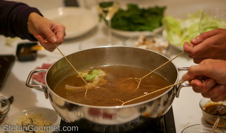 I don’t own such a device, but since I do own a tagliolini attachment for my pasta roller with a width of 2-3 mm, I figured I can cheat and prepare something very close to spaghetti alla guitarra using the attachment for tagliolini. To get square pasta, the thickness of the dough should also be 2-3 mm. Spaghetti alla chitarra should be served very much al dente, with a lot of bite to them, so it is important not to overcook them.