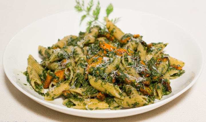 Tagliolini al Pesto di Zucchine e Pistacchi (Fresh Pasta with Zucchini and Pistachio Pesto)
