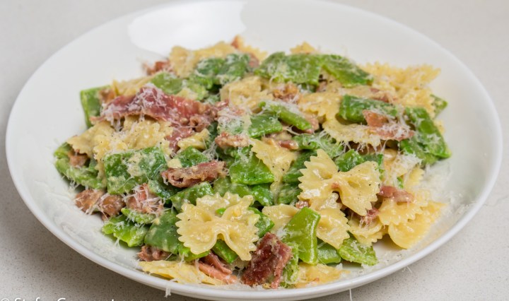 On the same day I had bought the rabbit, I had also bought some very nice prosciutto. As I still have fresh sage growing in my garden, I decided to turn those rabbit loins into rabbit saltimbocca. Saltimbocca is a famous dish from Rome consisting of veal scaloppine with prosciutto and sage. It is so delicious that it is called “jump into mouth” (salt = jump, bocca = mouth). I prefer to have a rabbit jumping in the direction of my mouth rather than a calf 😉 But seriously, this rabbit saltimbocca was absolutely delicious. The meat is super tender and succulent, and pairs very well with the prosciutto and sage. Compared to the veal version, it is a bit lighter and softer in style.