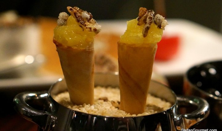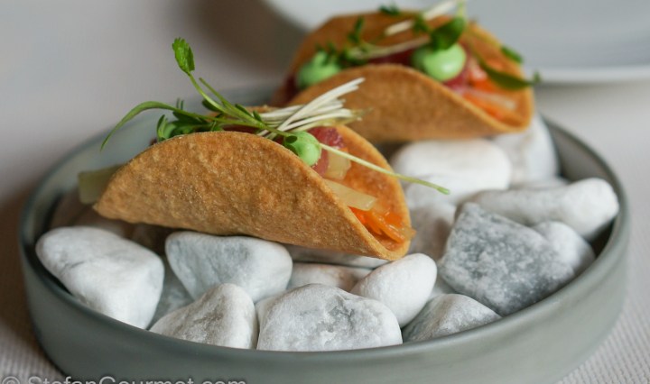 Chef Ron Blaauw gave up his restaurant with two Michelin stars (at which I never dined) and replaced it with a “gastrobar”, which after its first year received a single Michelin star. Ron Blaauw wanted to create a more accessible restaurant, and I think he has succeeded. At Ron Gastrobar you can order as many dishes as you like for 15 euros (about US$ 20) each. They are of an intermediate portion size: not as big as a main course, but not a small bite either. Three or four dishes are enough for a meal. The term “gastrobar” also means that there are a lot of tables and quite close together. The restaurant is a bit like a “grand café”. I was curious about this new restaurant, and so I went to check it out. (Photos taken with my iPhone in bad lighting conditions.) Continue reading “Dining in Amsterdam: Ron Gastrobar*”
