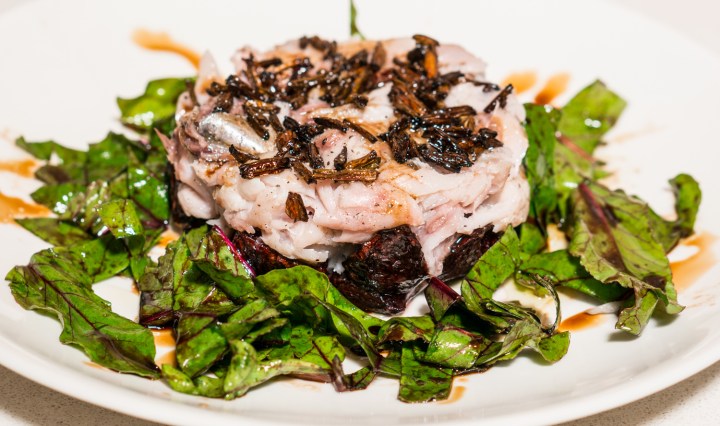 This is what I wrote in my review: “Carpaccio of prawns, flattened into a perfect disc, served with a bottarga mayonnaise and mandarin olive oil. It was suggested to spread out the ‘mayo’, which we did, and it was a great combination with the prawns and didn’t overpower them. Great balance of flavors, although I may have liked a slightly ‘fresher’ taste.”