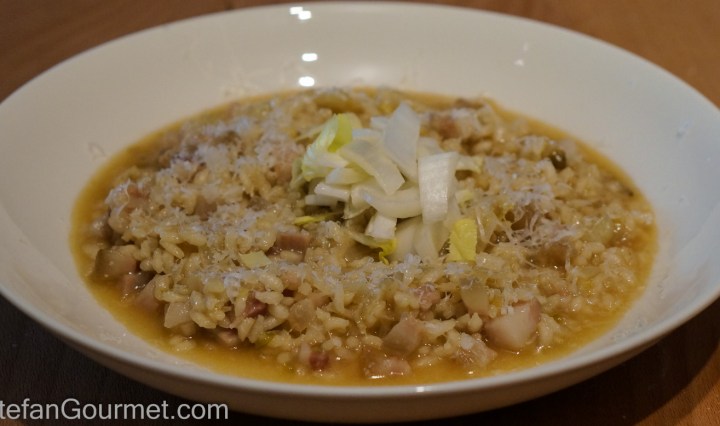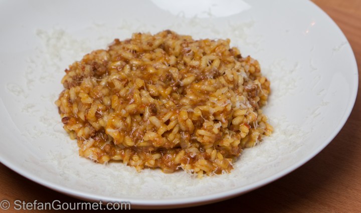 And now for today’s recipe. Yesterday evening was the first serata piemontese, and it was a great success. Tonight is the next installment, with the same food but mostly different wines. I will do a full report in a later post. I included two primi piatti in my Piemontese menu: agnolotti and risotto al barolo con salsiccia. Risotto is usually made with just a bit of white wine, but Piemonte has the speciality of using red wine and quite a lot of it so the main flavor of the risotto is that of the wine. The end result will thus depend on the quality of the wine used, and though it may seem like a waste of a good barolo, I strongly urge you not to use a cheap red wine for this as that would ruin the dish. Last night everyone agreed that this risotto was different, but delicious. Continue reading “Risotto al Barolo con Salsiccia”