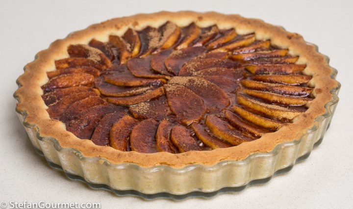 Since a lot of my supplies and equipment are stored in the garage and cannot be reached easily and it’s always difficult to cook in a strange kitchen, for dessert I resorted to this ‘cheat’ to make something that is like tarte tatin, but a lot simpler to make.