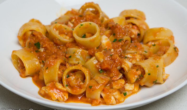 Calamari in Inzimino (Braised Squid with Swiss Chard in a Spicy Tomato Sauce)