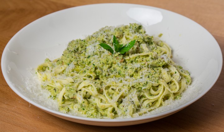 Tagliolini al Pesto di Zucchine e Pistacchi (Fresh Pasta with Zucchini and Pistachio Pesto)